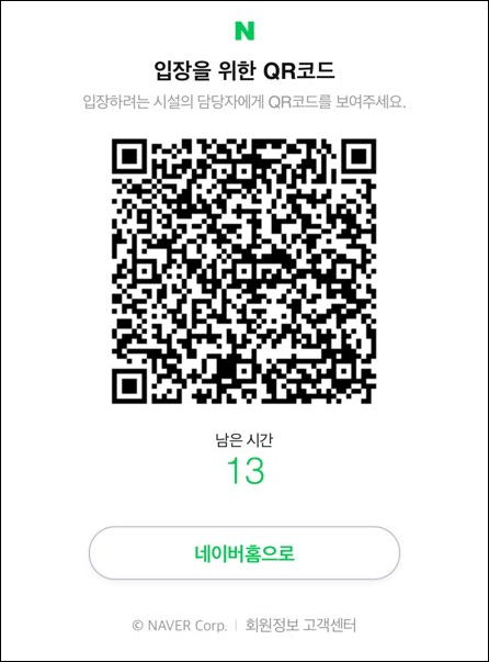 다음은 네이버앱을 이용한 QR코드 전자출입명부 이용방법입니다.