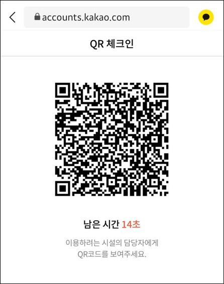 그러면 QR코드가 나타납니다. 찍고 들어가시면 됩니다.