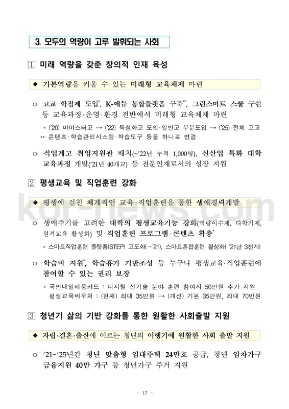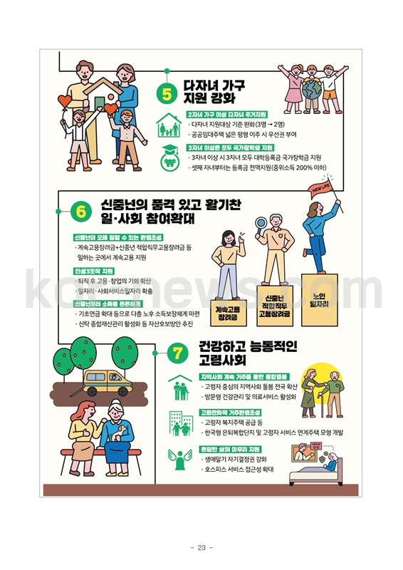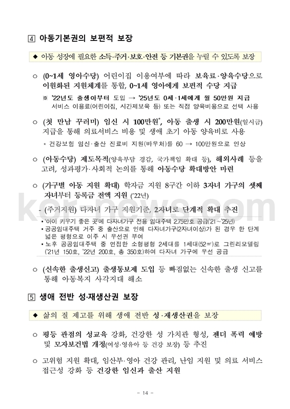 - 다자녀 가구 지원 : 주거지원, 국가장학금 지원 확대