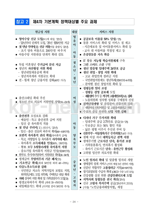 제4차 저출산·고령화 문제 해결 기본계획 내용