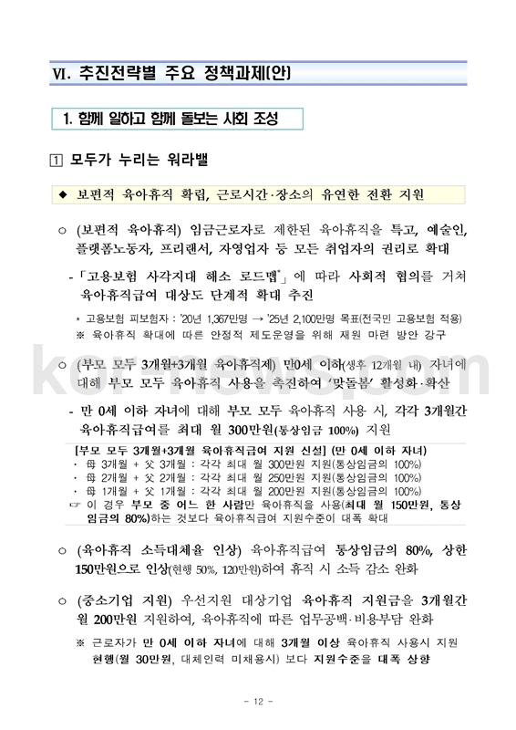 아이와 함께 하는 필수시간을 보장하고 삶의 질 제고를 위하여 육아휴직 이용자를 2019년 대비 2025년에 2배로 확대하는 계획입니다.